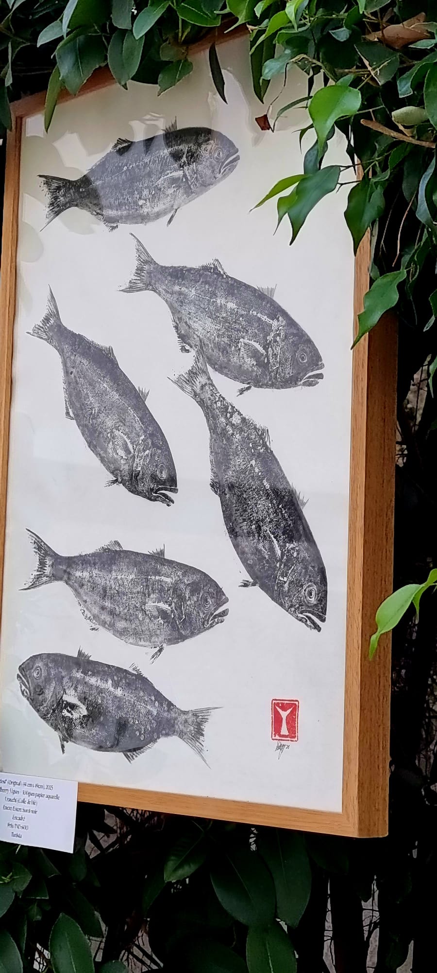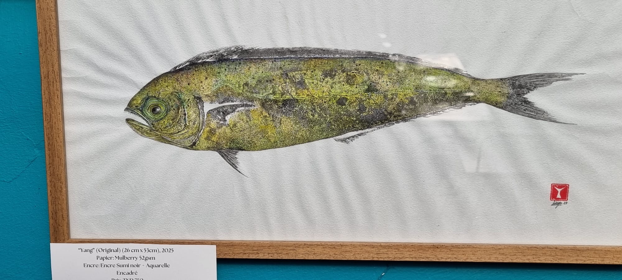 Le opere esposte a La Marsa – razze, pesci luna, piccole specie costiere – sembrano sospese tra documento scientifico e poesia visiva. Appese alle pareti verdi dello spazio, dialogano con la luce naturale, i tavoli apparecchiati, la vita quotidiana che continua intorno. Non c’è distanza museale: il pubblico cammina, osserva, mangia, parla, mentre le immagini raccontano un mare vissuto, attraversato ogni giorno.