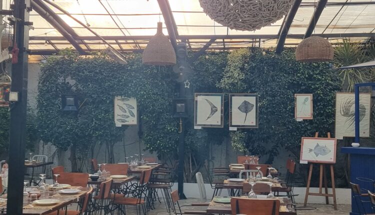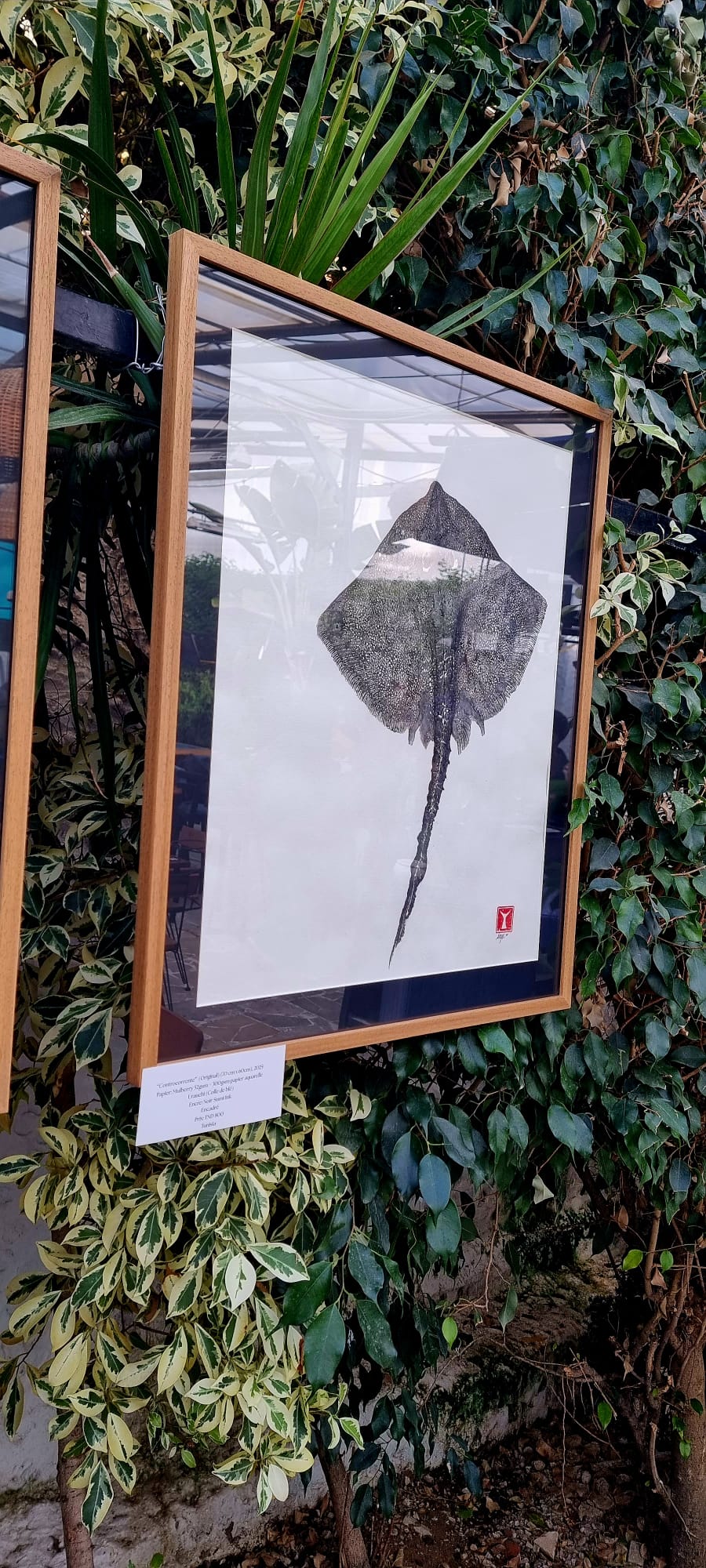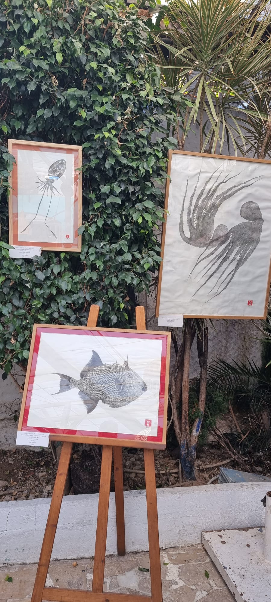 Le opere esposte a La Marsa – razze, pesci luna, piccole specie costiere – sembrano sospese tra documento scientifico e poesia visiva. Appese alle pareti verdi dello spazio, dialogano con la luce naturale, i tavoli apparecchiati, la vita quotidiana che continua intorno. Non c’è distanza museale: il pubblico cammina, osserva, mangia, parla, mentre le immagini raccontano un mare vissuto, attraversato ogni giorno.
