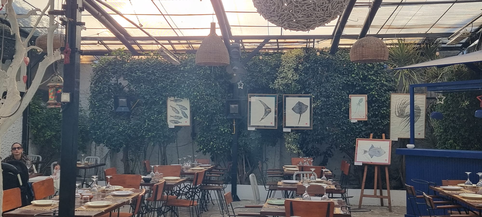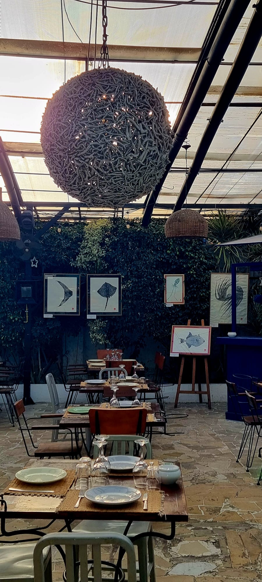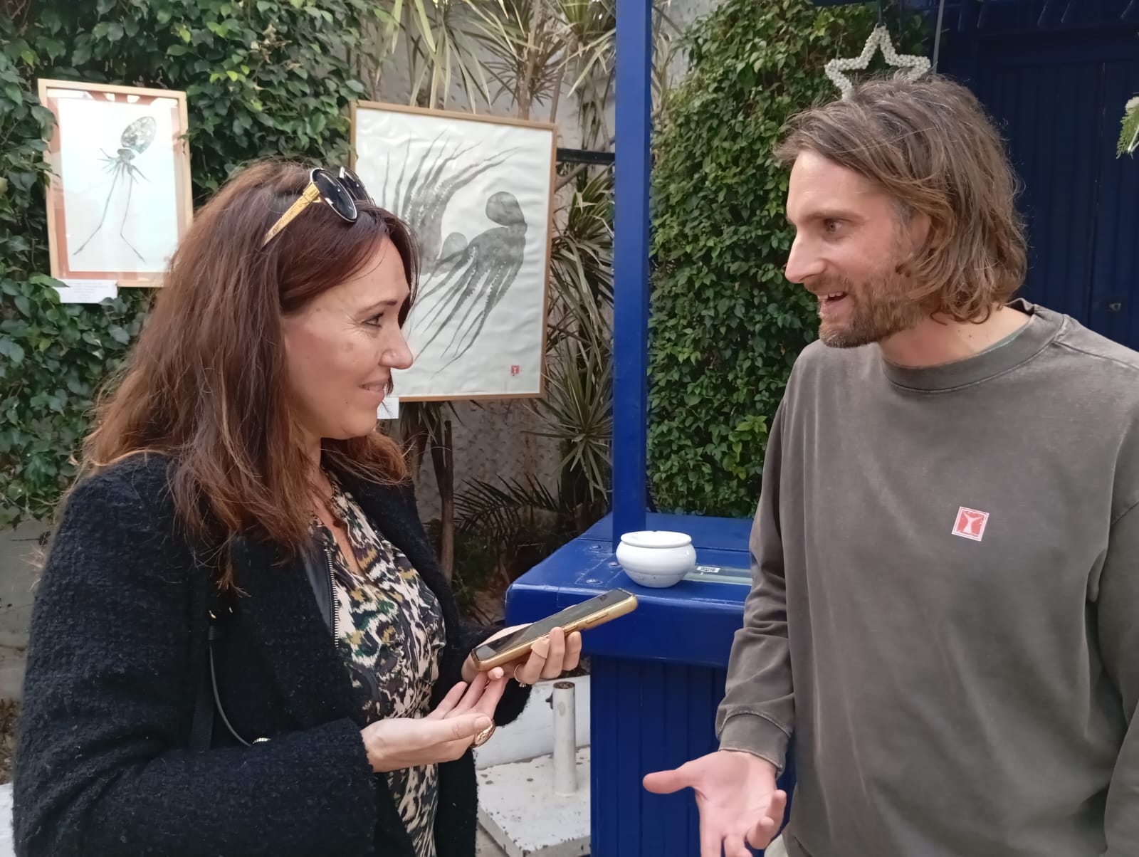 Le opere esposte a La Marsa – razze, pesci luna, piccole specie costiere – sembrano sospese tra documento scientifico e poesia visiva. Appese alle pareti verdi dello spazio, dialogano con la luce naturale, i tavoli apparecchiati, la vita quotidiana che continua intorno. Non c’è distanza museale: il pubblico cammina, osserva, mangia, parla, mentre le immagini raccontano un mare vissuto, attraversato ogni giorno.