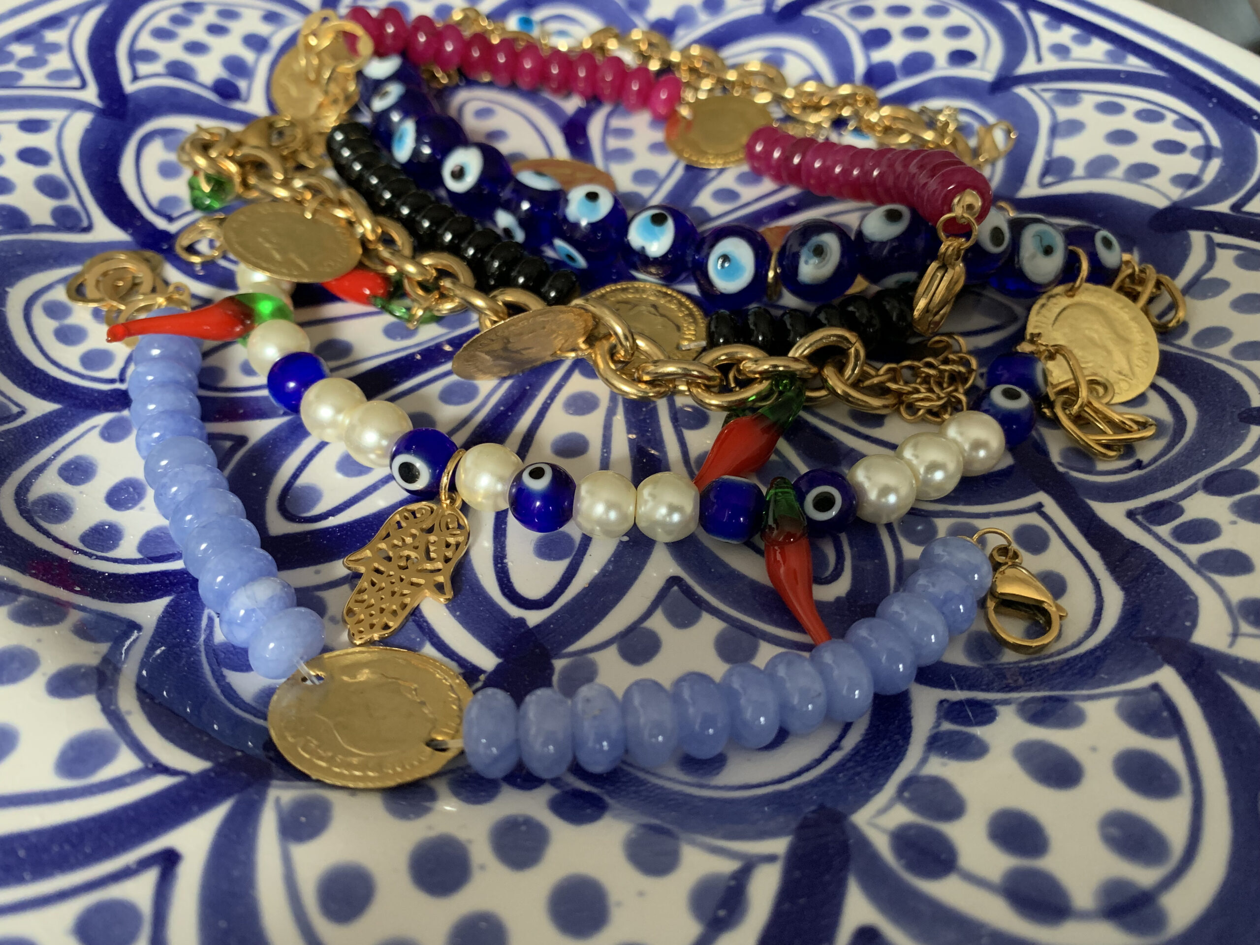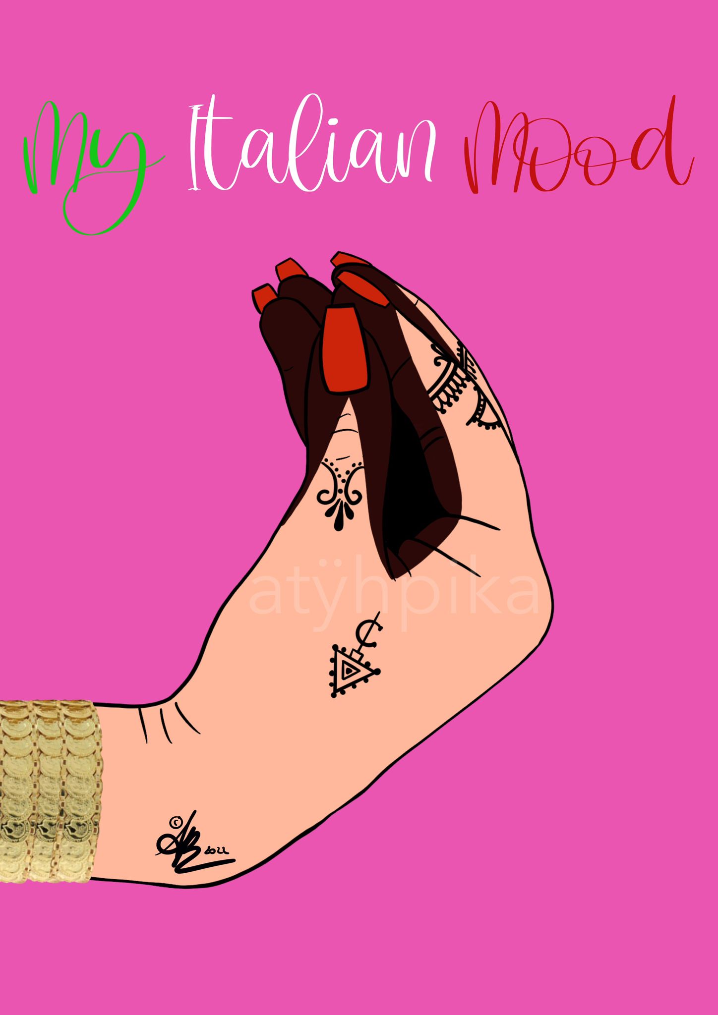 Braccialetti, collane, orecchini, spille e borse le creazioni realizzate, con qualche pezzo anche unico. Non poteva mancare “l’harissa vip box”, un portagioielli che riproduce la scatoletta dell’harissa tunisina, immancabile nelle case di ogni famiglia. Ed è proprio in una scatola di harissa formato gigante, che Arbia porta con sé gli strumenti necessari per realizzare i suoi gioielli. “I miei gioielli riflettono la mia identità: sono un 50 e 50, un mix di Tunisia e di Italia, soprattutto Italia del sud, che amo molto. Ho voluto dare il nome Atyhpika perché mi sono sempre sentita diversa e sono stata discriminata per ciò: a 14 anni un’amica mi disse di non indossare così tanti braccialetti, perché l’avrei fatta vergognare. Ora non ho più paura del pregiudizio e del giudizio della gente, ma oso, è l’esatto contrario. In ogni gioiello c’è un tocco famigliare o un richiamo alla Storia, come quello con la lira, l’antica moneta ottomana, o la spilla, ispirata da una collana con la catena rihana che avevo acquistato ad Hammamet. Un gioiello è un dettaglio che cambia l’outfit. Le mie creazioni non voglio tenerle per me, ma condividerle: ogni gioiello è storia, identità, cultura, attraverso il quale mandare un messaggio”.