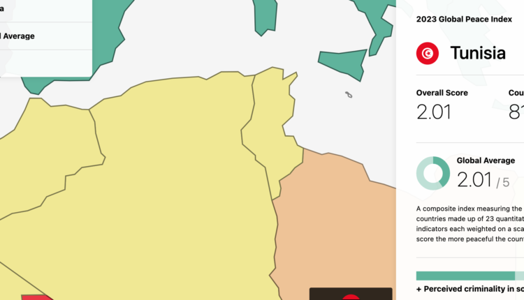 Rispetto al 2022, nel Global Peace Index, la Tunisia ha guadagnato quattro posti, classificandosi 81esima  a livello mondiale, mentre, con un punteggio di 2,010 su 5, occupa il primo posto nel Maghreb, davanti al Marocco (84esimo) e all’Algeria (96esima): lo riporta il quotidiano Webdo.