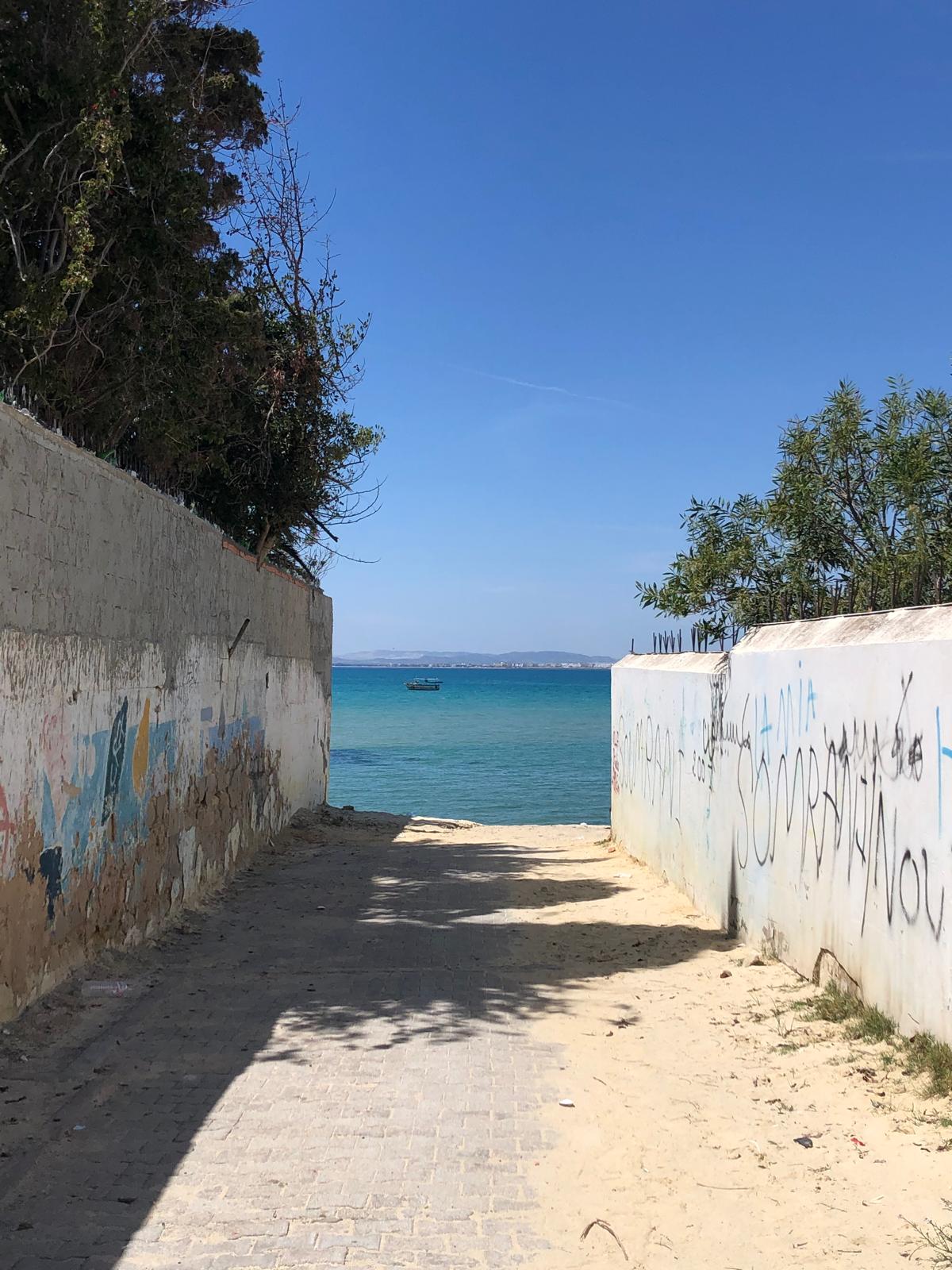 Dopo la doverosa passeggiata in Medina, il bagno a mare era d’obbligo. L’acqua era freddissima ma il clima troppo dolce per non buttarsi per poi lasciarsi accarezzare ancora una volta dal sole, stavolta però distesi su un asciugamano. Passa un venditore ambulante, sorriso e cenno d’intesa. Dopo poco si va. Ora di pranzo, tanti localini in zona lungomare in cui pranzare con pochi dinar: il cibo era buono, il pescato sembrava fresco (non me ne intendo) ma che bello, si poteva bere la birra. Dopo mesi di astinenza, non lo nego, è stato un sollievo.
