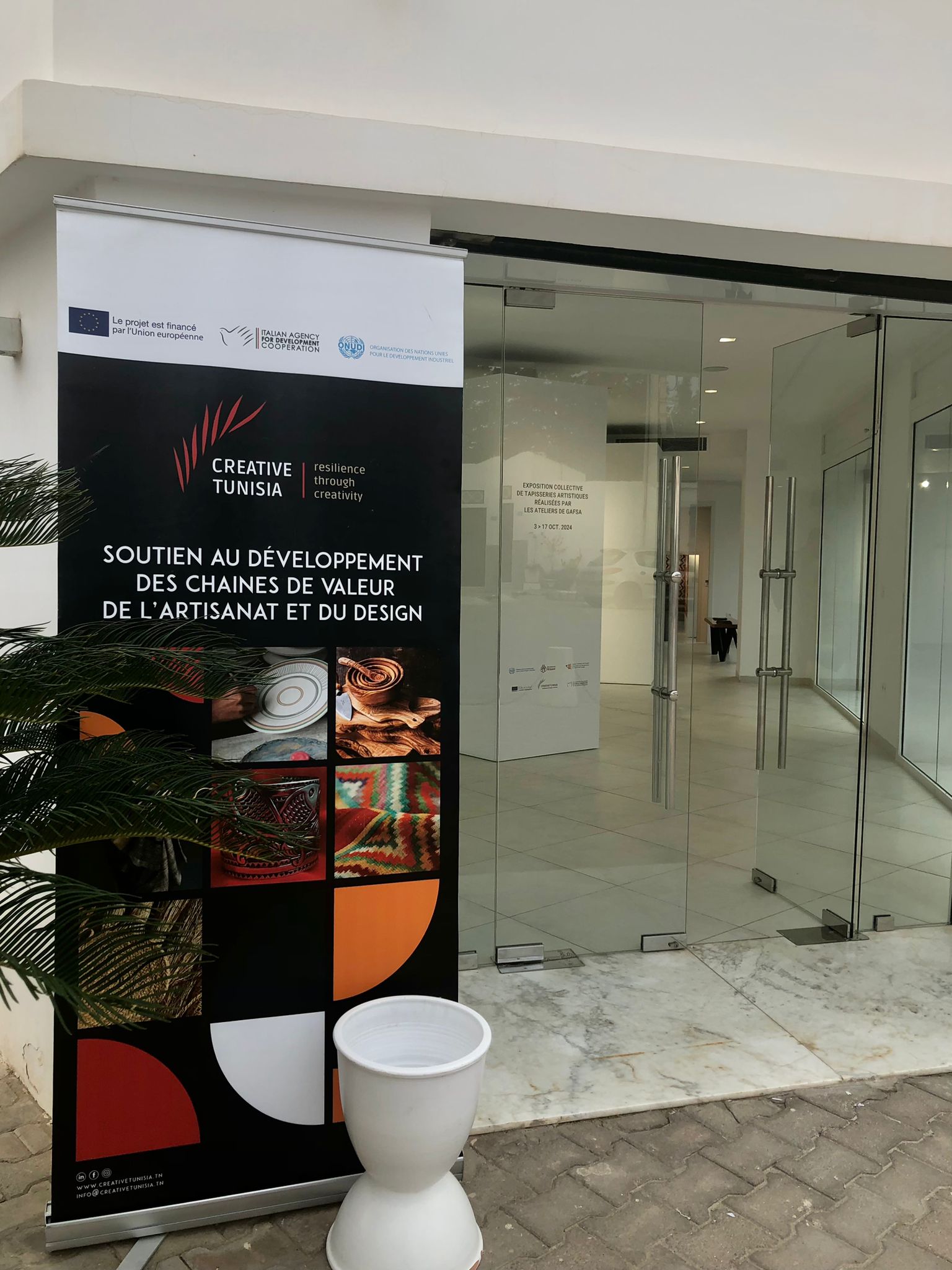 Arte, artigianato, tessitura, ma anche colori, donne, opportunità, sostenibilità, durata. Come la definirebbero i tunisini, una shakshuka di parole e concetti, che tuttavia assume ordine e significato quando la si assapora da vicino, precisamente presso la galleria TGM a La Marsa, Tunisi. Proprio alla galleria TGM è stata inaugurata il 3 ottobre la mostra “Au fil de la mémoire”, “Lungo il filo della memoria”, frutto di un progetto dell’associazione Creative Tunisia, finanziato dall’Unione Europea tramite il progetto Tounes Wihjetouna e dall’Agenzia italiana per la cooperazione allo sviluppo, che sarà visitabile fino al 17 ottobre.