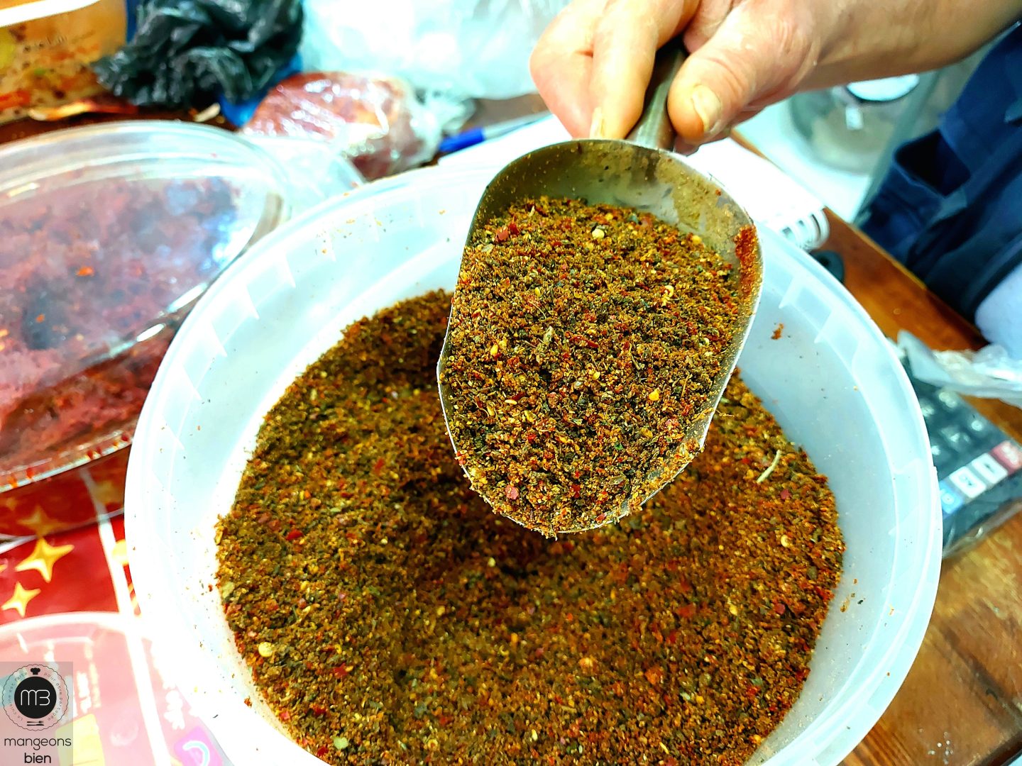 Quando i fichi e le more diventano maturi, cominciano le preparazioni di questa Harissa a base di prodotti freschi. La leggenda vuole che si utilizzi un assortimento di foglie verdi, cui la maggior parte proviene dagli alberi da frutto di stagione (il fico, il moro, il carrubo, l’arancio e il nespolo) così come le foglie del fico d’india e dell’olivo. E le foglie di alloro, “El – feyjel”, (la via dei giardini, conosciuta anche con il nome di Erba della grazia), le foglie di menta, di basilico, la maggiorana, il tebel, l’aglio, il carvi, i semi di finocchio, la curcuma, così come altre spezie escluso il cumino. Tutti questi ingredienti vengono mescolati con del peperoncino pestato finemente in un mortaio di legno, dopo essere stato essiccato al sole.
