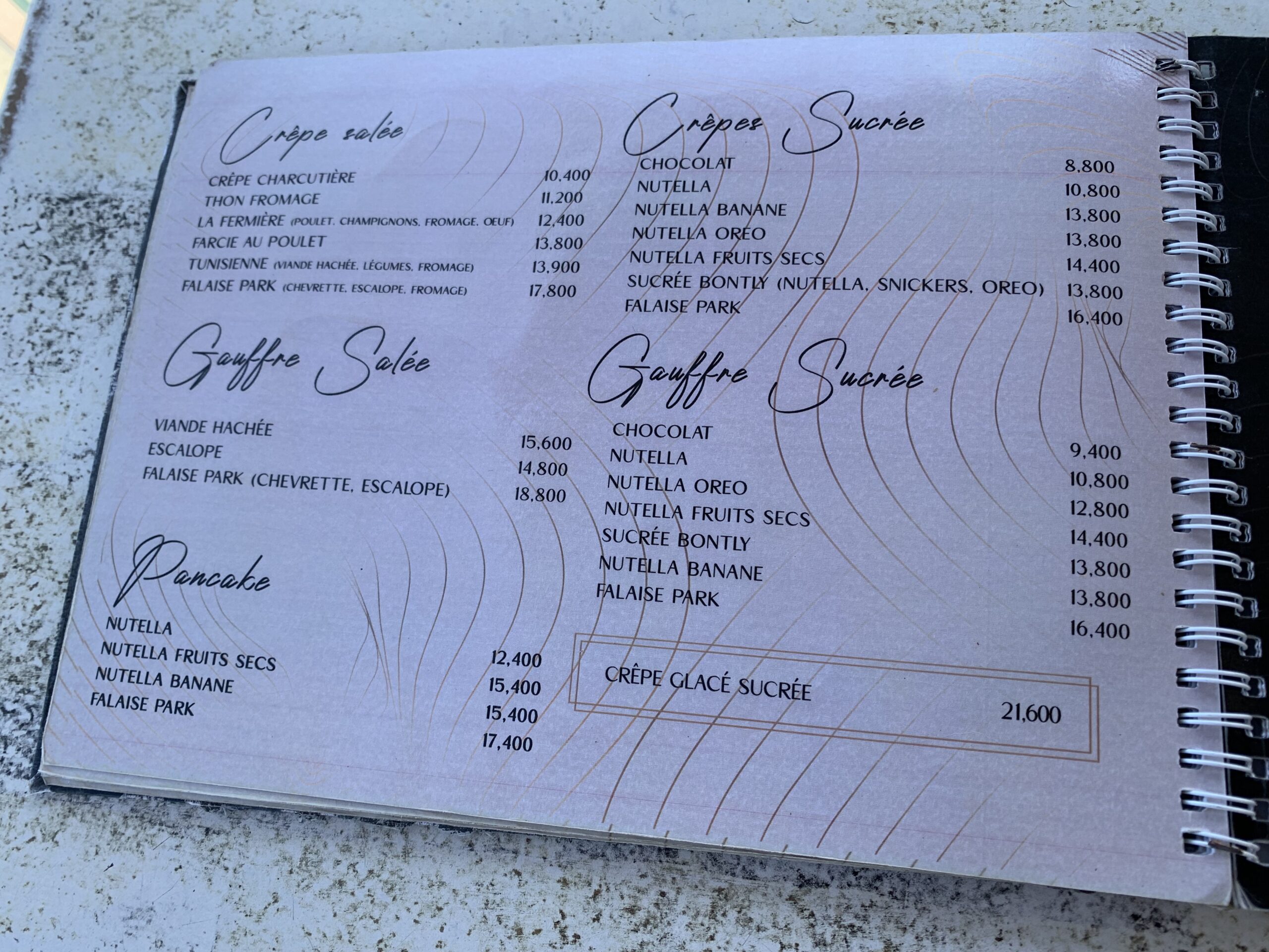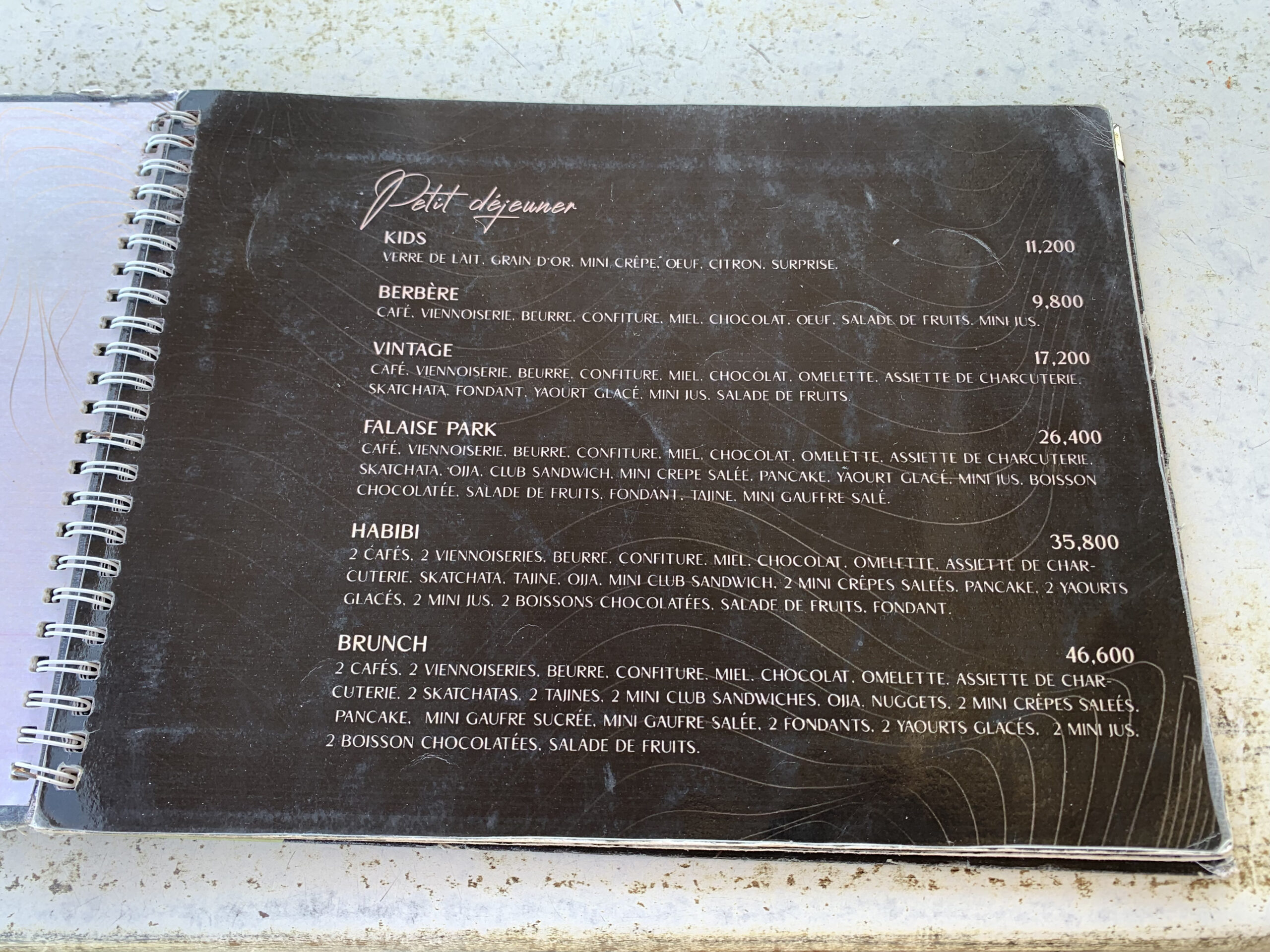 Io non avevo molta fame e ho preso la colazione “berbère” che in realtà di amazigh non aveva nulla, se non il nome: un cafè a scelta, croissant, pane, marmellata, miele, cioccolato spalmabile, uovo sodo, macedonia e succo. Il menù è ampio: oltre alla scelta per la colazione, diversi i cafè e i the che si possono prendere, i succhi, gli yogurt, per poi passare ai piatti caldi: dalle pizze, ai tacos, hamburger, crepes dolci e salate e tanto altro. I prezzi sono più alti della media, eppure il locale è sempre piuttosto frequentato, e quel giorno era un continuo via vai di vassoi giganti riempiti con le varie formule per la colazione.