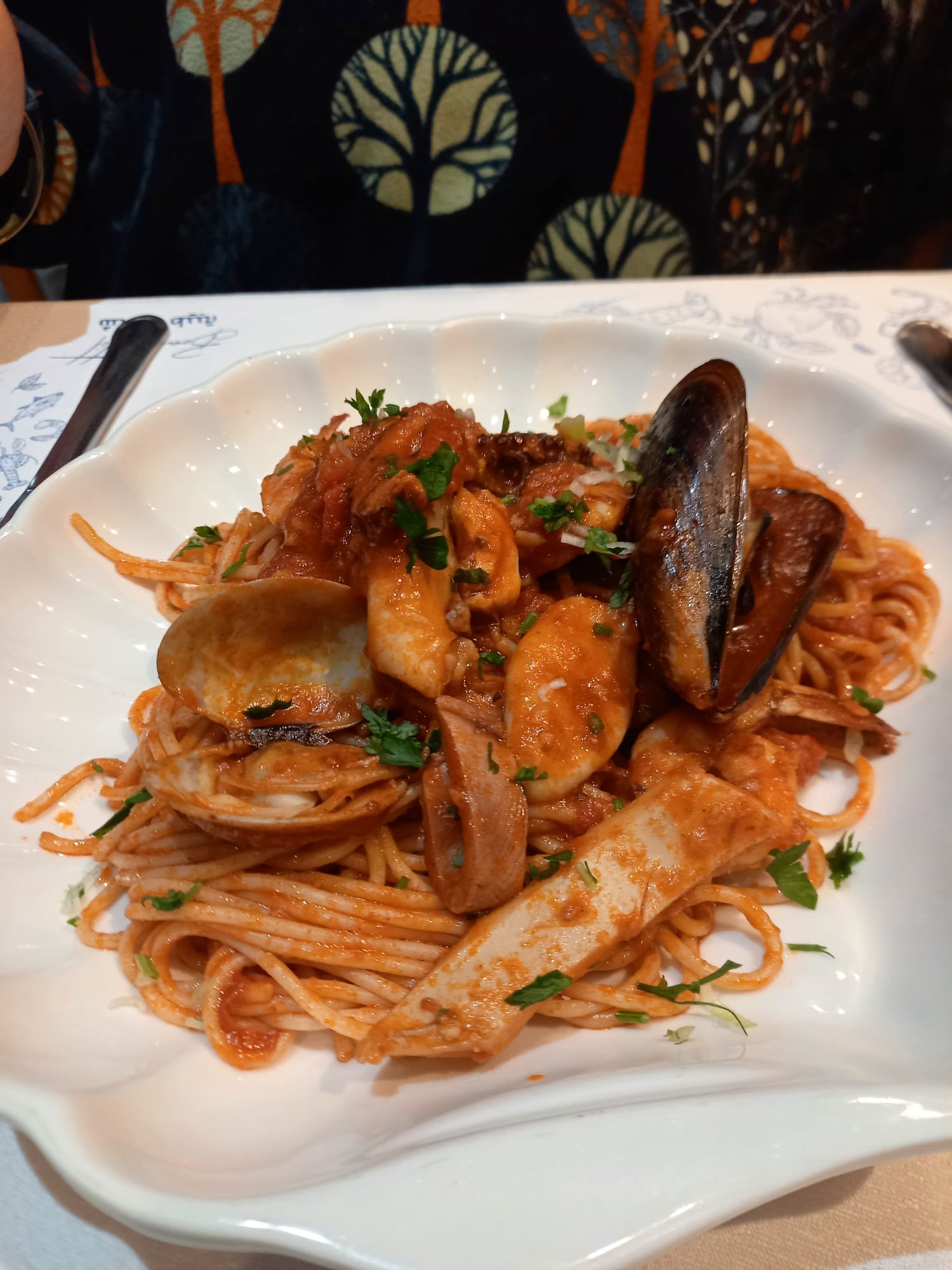 Per una cena più carina ci siamo recati al Ristorante Casablanca, abbiamo scelto la formula Menù. Entrata con una zuppa un po’ piccante (chorba) io però ho preso la versione zuppa di verdura che era buonissima, a seguire brik e pasta ai frutti di mare, si poteva scegliere anche un’altra opzione, ma onestamente non ricordo cosa fosse. La formula include anche un dolce: io ho preso il sorbetto al limone, ma si poteva avere il creme caramel, la crema catalana oppure la frutta. Questa formula costa 40 dinari, l’acqua 5 dinari a bottiglia. Noi in quattro con due bottiglie di acqua, e quattro menù abbiamo speso 170 dinari. Il ristorante è curato nel servizio e nella mise en place, siamo stati molto contenti e sicuramente quando torneremo a Sfax verremo ancora!