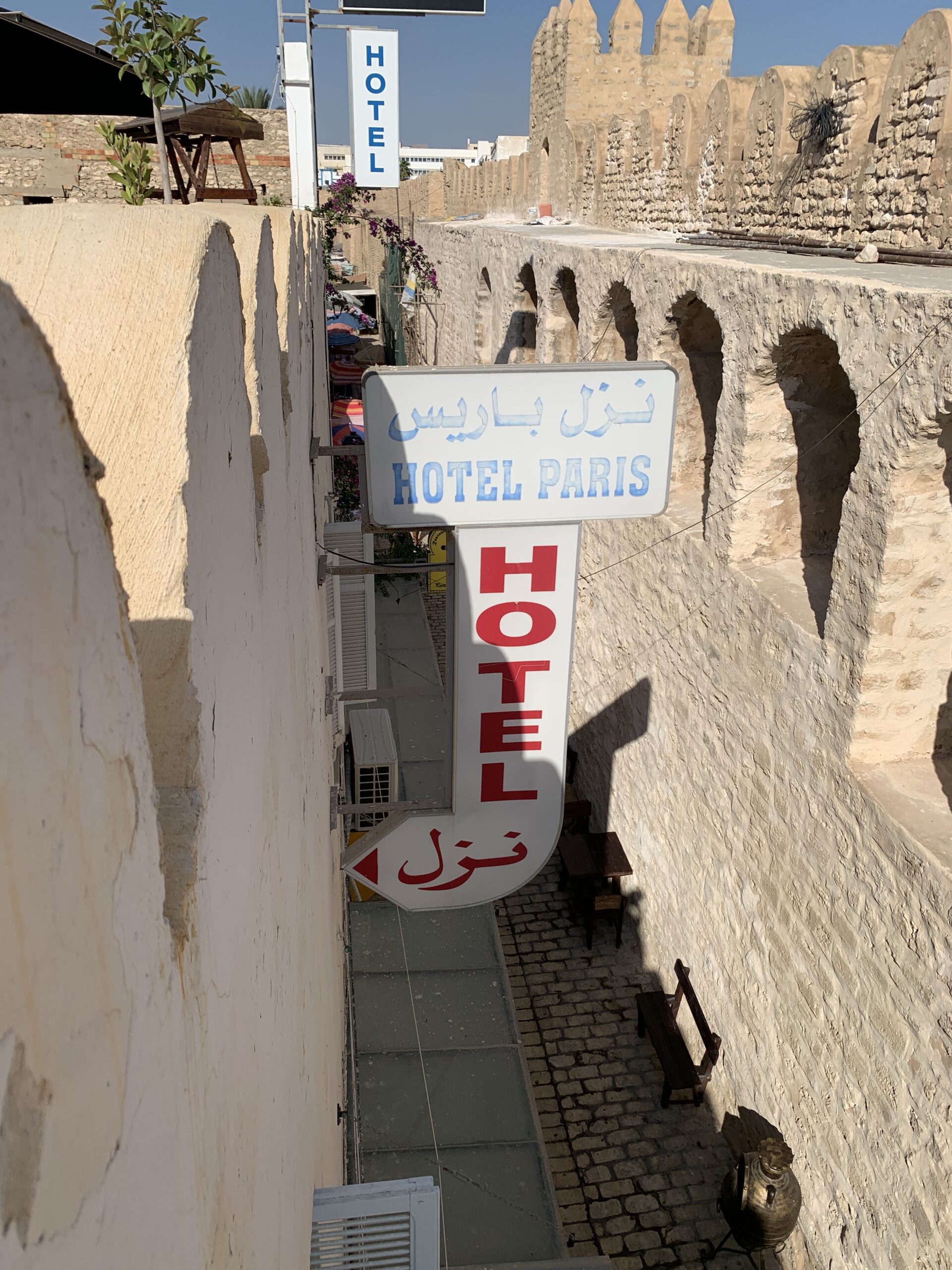 Situato nella Medina di Sousse, non troppo distante dalla stazione ferroviaria (circa 15 minuti a piedi), si trova l’hotel Paris. Ci siamo stati a fine agosto 2024: cercavamo un alloggio non troppo caro per un soggiorno di due notti in questa città e tra le varie ricerche effettuate, la scelta è ricaduta su questo hotel. Abbiamo effettuato la prenotazione tramite Airbn: per un imprevisto, abbiamo dovuto spostare il soggiorno di un giorno, e abbiamo scritto all’hotel tramite questa piattaforma. La risposta è stata immediata e senza nessun problema ci hanno spostato il soggiorno. Questo è un primo punto a loro favore: immediatezza nella risposta e nella conferma del soggiorno, aspetto non scontato.