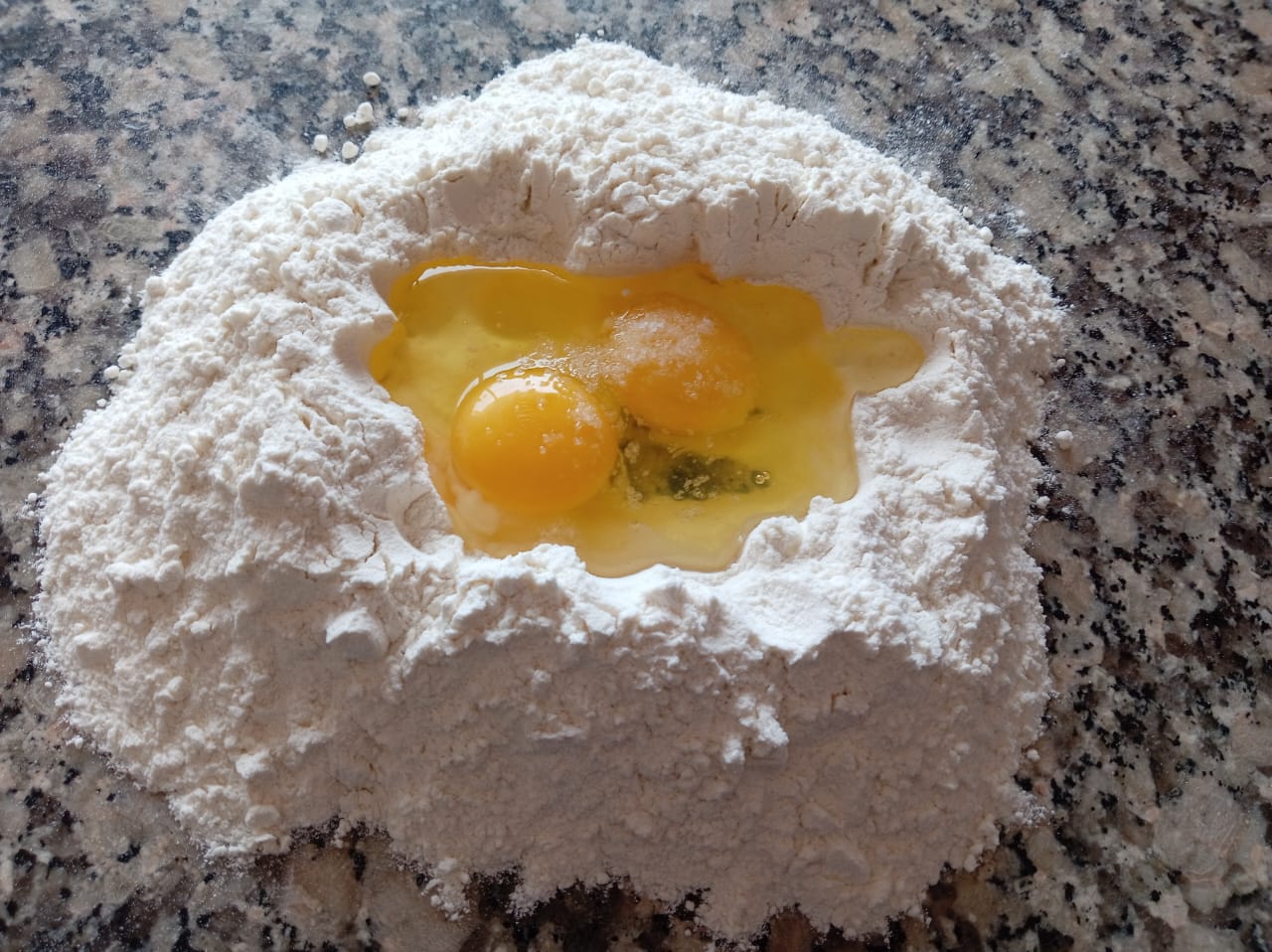 Uova e farina per preparare ravioli – photo Kyra Ferrari