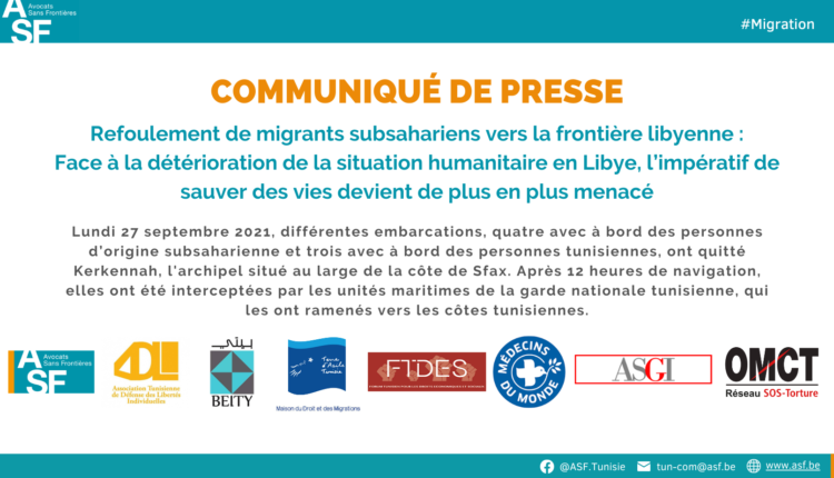 Lunedì 27 settembre 2021, diverse imbarcazioni, quattro con a bordo delle persone di origine subsahariana e tre con a bordo dei cittadini tunisini, hanno lasciato le isole Kerkennah, situate al largo della costa di Sfax. Dopo dodici ore di navigazione, sono state intercettate dalle unità marittime della guardia nazionale tunisina, che le ha riportate verso le coste tunisine. Secondo le testimonianze raccolte, le persone di nazionalità tunisina sarebbero state liberate, mentre quelle di origine subsahariana sarebbero state transferite verso la frontiera libica. Secondo le nostre fonti, il gruppo di stranieri si componeva di un centinaio di persone, tra cui diverse donne e minori. Tra le donne, almeno tre sarebbero incinte.