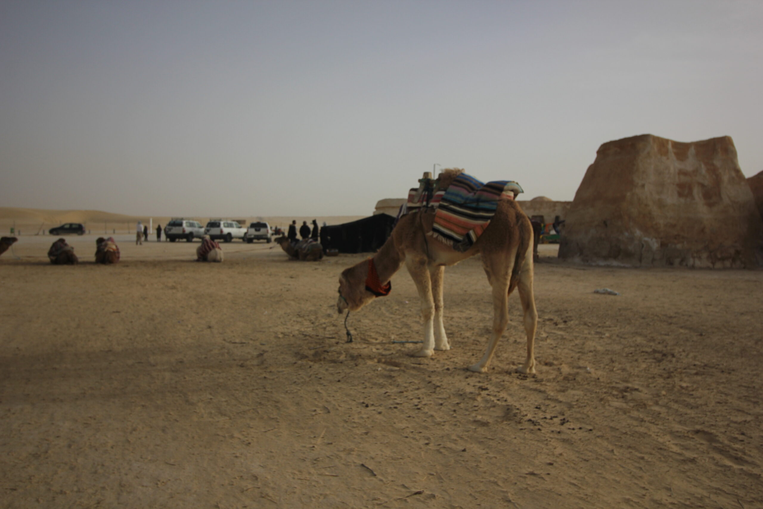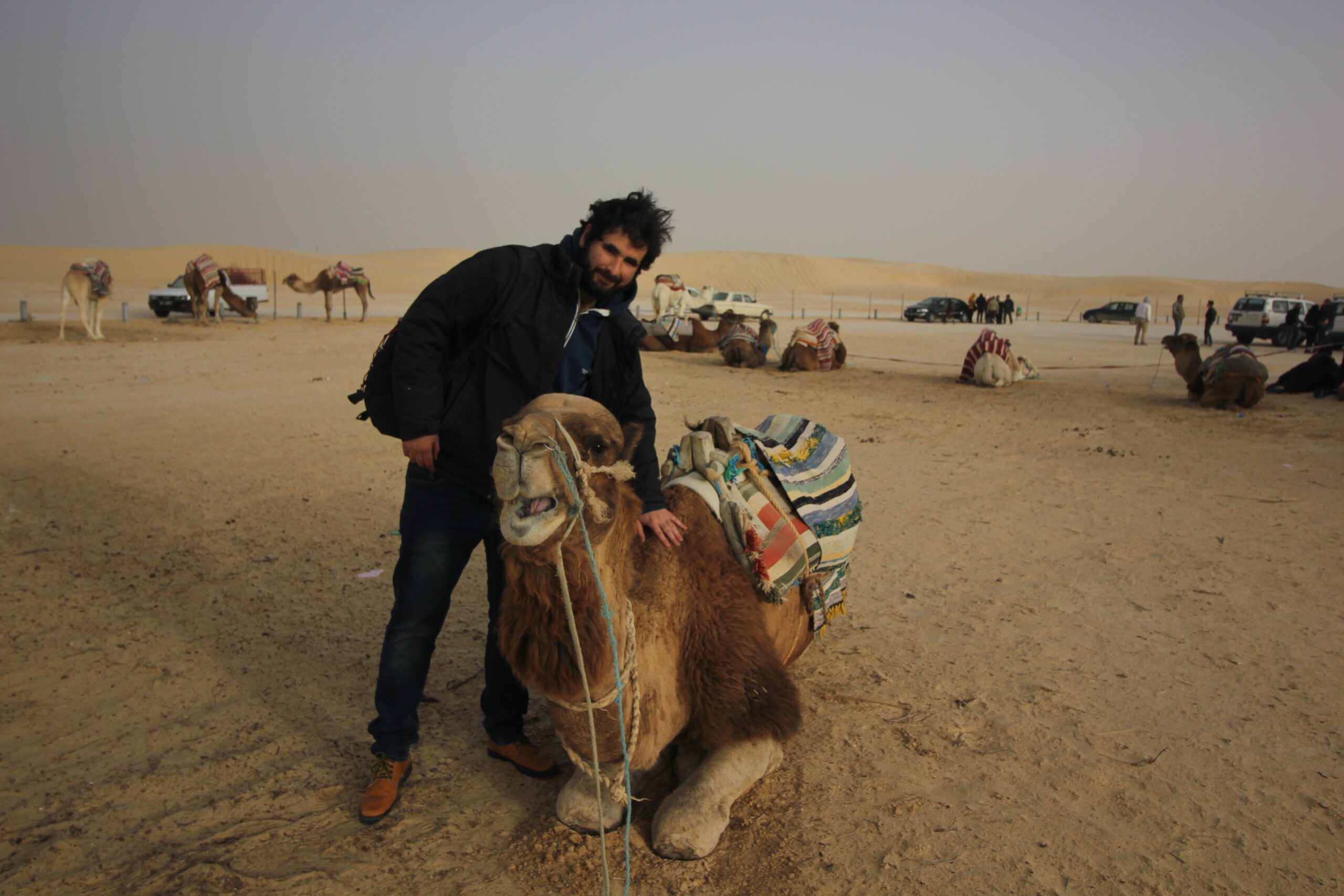 Mentre Edoardo stava girando tra archi, deumidificatori in legno, costruzioni e set scenici, io sono stato agganciato da un altro venditore che mi offre un giro in cammello. Era una cosa che sognavo di fare da una vita e accetto, mi chiede 10 dinari, circa 3 euro e 30, per un giro di 5 minuti con foto annesse, che scatta tutte col dito davanti all’obiettivo. E’ stata la prima e unica volta in vita mia in cui sono salito su un cammello senza vederne le condizioni, ora è una cosa che non faccio più volentieri e suggerisco a chiunque stia leggendo di tenere a mente l’aspetto etico.