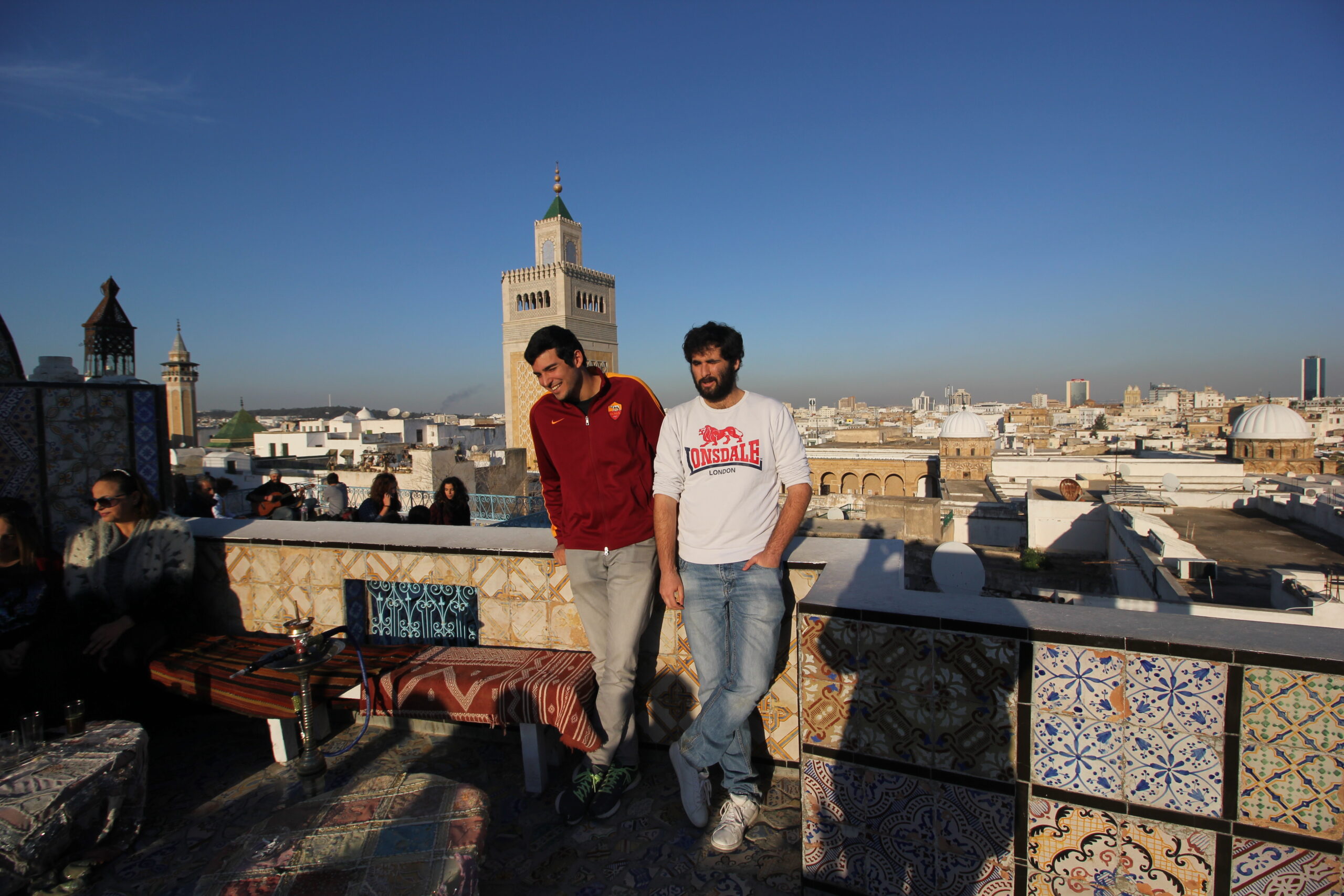 Dopo essere andato a prendere Edoardo in taxi all’aeroporto di Tunisi (un consiglio, se dovete prendere un taxi per andare dall’aeroporto al centro di Tunisi/altra destinazione, prendete il taxi di sopra alle partenze, non sotto dove ci sono gli arrivi, pagherete anche meno della metà), siamo andati a casa mia per poggiare lo zaino e uscire subito per fare un giro in Medina, dove abbiamo fatto il solito giro: terrazza panoramica, cafè mrabet per un the ai pinoli, Turbet El Bey, Rue Jemaa Ezzitouna, ingresso al cortile della Moschea Zitouna e bancarelle varie, con pranzo nel mio ristorante di fiducia introvabile nella medina. Dopo una lunga shisha, ci siamo recati a Sidi Bou Said con il taxi – all’epoca il costo da Place de la Victoire era di circa 10 dinari, ora almeno 20 in orario diurno, 30 in quello notturno – per vedere il tramonto e perderci nei vicoli del piccolo centro storico della città, fino a ritrovarci, un po’ a caso, a La Marsa, dopo una lunga camminata a piedi.