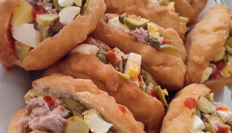 I fricassée tunisini sono dei piccoli panini fritti e farciti generosamente con patate lesse, tonno, uova, olive, harissa o slata méchouia e capperi.
